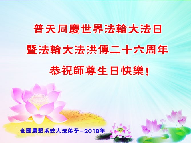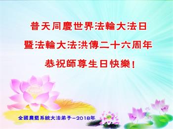 中国大陆农牧系统大法弟子恭祝慈悲伟大的师父生日快乐!恭贺5.13世界法轮大法日!