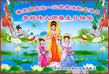 沧州石化全体大法弟子恭贺世界法轮大法日!恭祝伟大的师尊生日快乐!