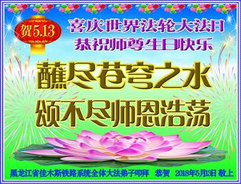 黑龙江佳木斯铁路地区大法弟子贺5·13世界法轮大法日!
