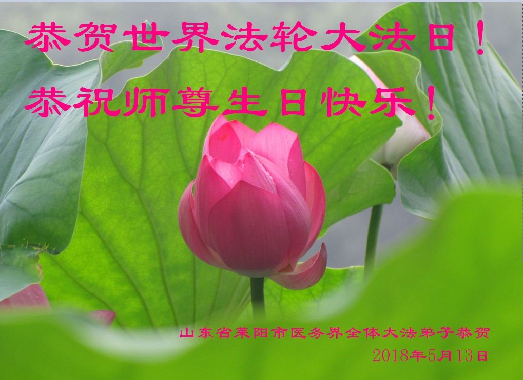 师父为救度我们历尽千辛万苦,承受了无尽的磨难,没有任何语言能表达对师父的感恩之心,只能发自心底的一句话,恭祝师父生日快乐! 华北油田一学法小组全体大法弟子敬上 2018年4月28日星期五 山东省莱阳市医务界全体大法弟子恭祝慈悲伟大的师尊生日快乐!恭贺世界法轮大法日!