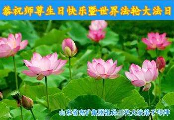 山东省兖矿集团祖孙三代大法弟子恭祝师尊生日快乐!暨世界法轮大法日!