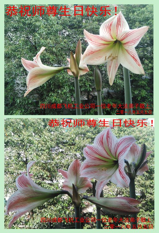 师尊您好! 《梅花诗》曾预言,一院奇花春有主,我们深信这个春天即将到来,我们将见证在这个春天的某一天,大法弟子和世人恭迎师尊还乡!在这辞旧迎新的时刻,人间任何美好的词句都表达不尽弟子对师尊的感恩,弟子倍感这一刻值千金,值万金,只有抓紧时间精進实修,做好三件事,多救世人,以报师恩,圆满随师还。在此我和的女儿恭祝师尊生日快乐! 黑龙江省教育系统大法弟子 二零一八年四月十五日 四川省开江县供销社系统大法弟子恭祝师尊生日快乐!普天同庆5.13世界法轮大法日!