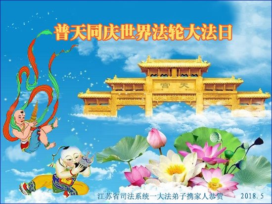 江苏省司法系统一大法弟子携家人恭贺世界法轮大法日!恭祝师父生日快乐!
