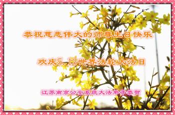 谢谢师父把我变成了一个道德高尚的好人,做一个清清白白的公务员! 望世人明白真相,看清善恶正邪,做出一个清醒、理智、正确的选择! 南京公安系统大法弟子恭祝慈悲伟大的师尊生日快乐!