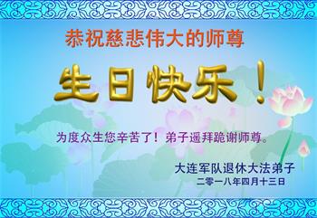 大连军队转业干部大法弟子恭祝慈悲伟大的师父生日快乐!普天同庆世界法轮大法日!