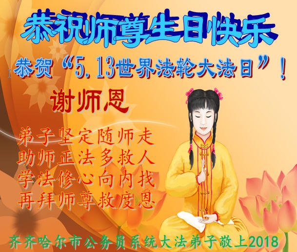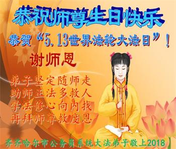 黑龙江省齐齐哈尔市公务员系统大法弟子恭祝伟大师尊生日快乐!普天同庆“五一三”世界法轮大法日!
