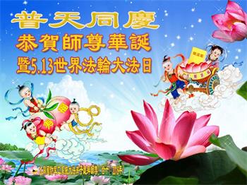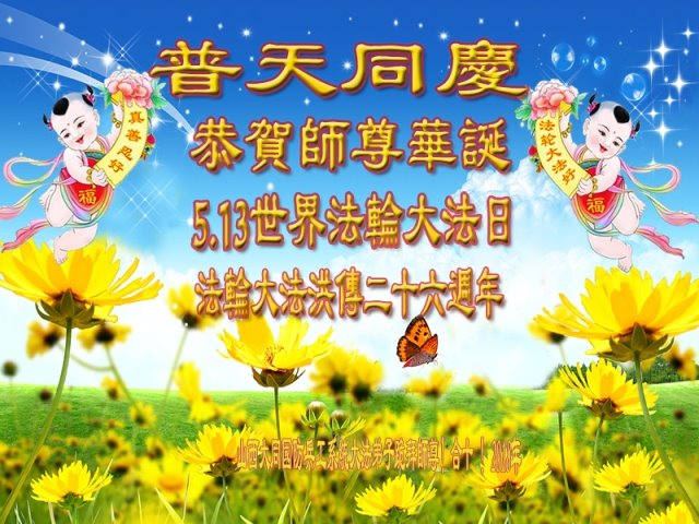 我们与全世界大法弟子一起欢庆世界法轮大法日,感谢大法!感谢师父! 大陆公务员系统大法弟子恭祝慈悲伟大的师尊生日快乐!