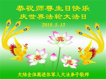 大陆全体离退休军人大法弟子恭贺法轮大法日!庆贺世界法轮大法日!