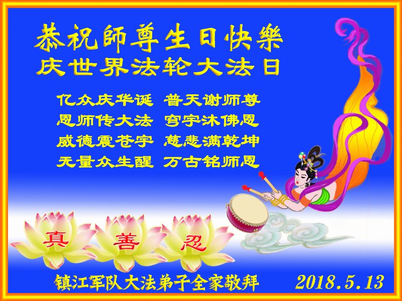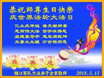 大陆镇江军队大法弟子全家恭祝慈悲伟大的师父生日快乐!同庆世界法轮大法日!