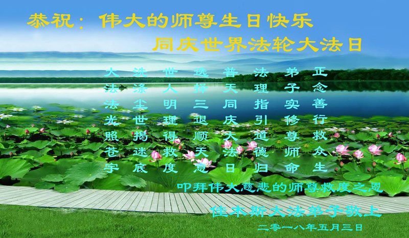 黑龙江省佳木斯大法弟子恭祝伟大师尊生日快乐!并祝贺世界法轮大法日!