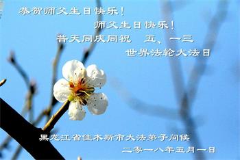 黑龙江佳木斯大法弟子恭贺师尊华诞暨法轮大法日!