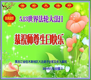 黑龙江省佳木斯地区大法弟子全家及亲人恭贺5.13世界法轮大法日!恭祝师尊生日快乐!