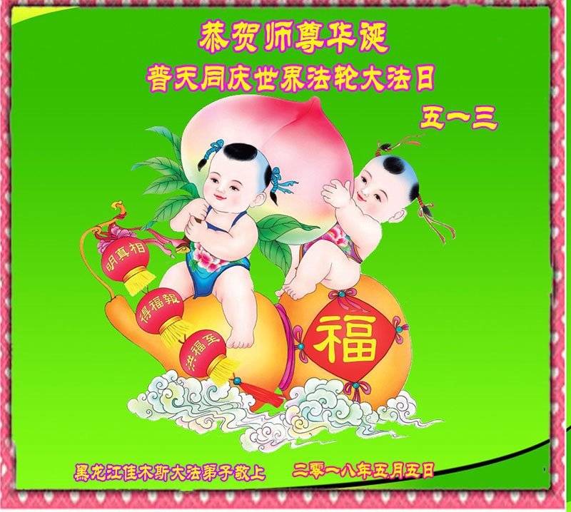 并祝贺世界法轮大法日 庆祝伟大师尊生日快乐! 并祝贺世界法轮大法日 五月十三 人神高歌 恭祝师尊 生日快乐! 法正乾坤 全灭邪恶 助师正法 救人多多 最后精進 践史前诺 正法功绩 载入史册 黑龙江省佳木斯大法弟子 2018.5.13 黑龙江佳木斯大法弟子恭祝伟大师尊生日快乐!并祝贺世界法轮大法日!