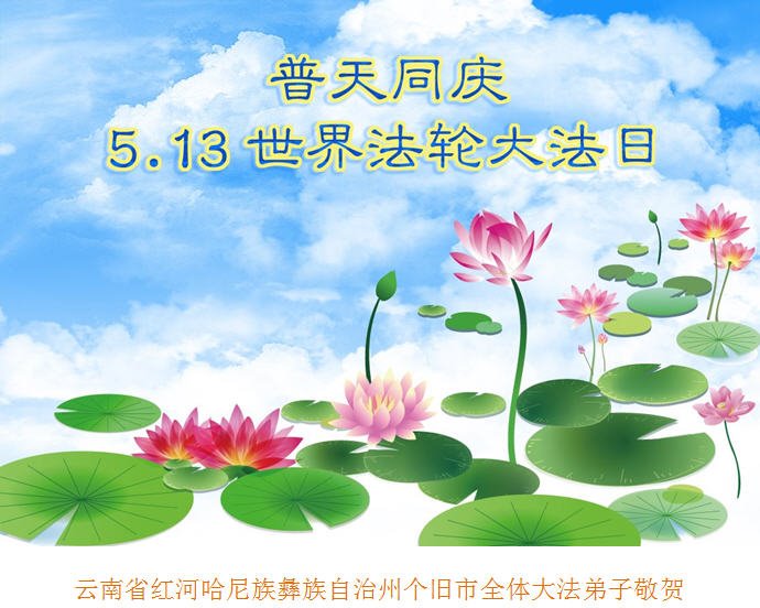 云南红河哈尼族彝族自治州个旧市全体大法弟子恭贺慈悲伟大师父生日快乐!普天同庆5.13世界法轮大法日!
