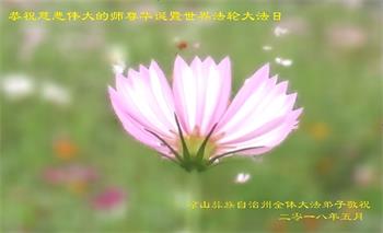 花开时节意方长 弟子盼师回故乡 五月十三狱中望 手捧鲜花送天上 辽宁沈阳一朝鲜族大法弟子恭祝慈悲伟大的师尊生日快乐!