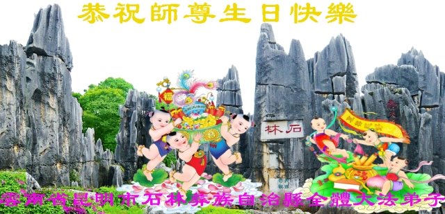 云南省昆明市石林彝族自治县大法弟子恭祝师尊生日快乐!