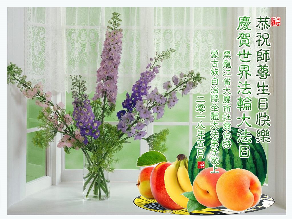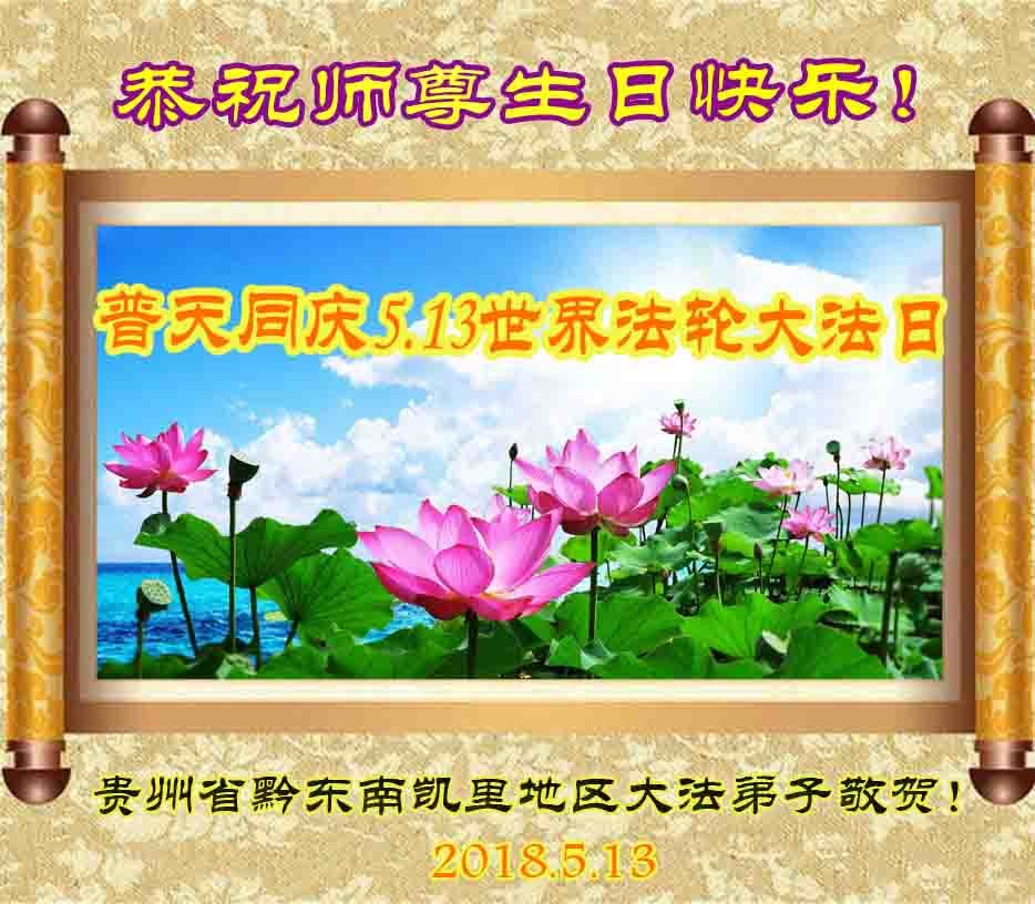 黑龙江省大庆市杜尔伯特蒙古族自治县全体大法弟子敬上 二零一八年五月 贵州省黔东南苗族侗族自治州凯里地区大法弟子恭祝师父生日快乐!