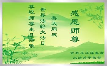 吉林省延边朝鲜族自治州珲春市大法弟子恭祝师尊生日快乐!普天同庆世界法轮大法日!