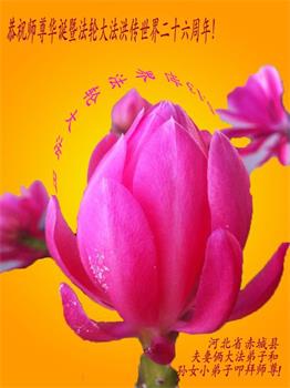 河北省张家口赤城县夫妻俩大法弟子和孙女大法小弟子恭祝师尊华诞!