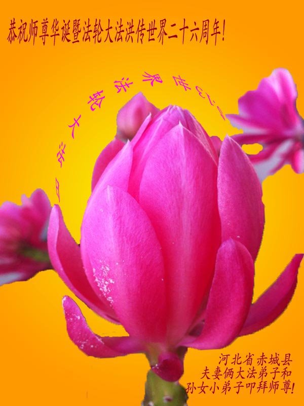 四川眉山一大法小弟子跪拜师父,谢谢师父保护大法小弟子!恭祝师父好,祝师父生日快乐! 河北省衡水市深州市一大法小弟子恭祝师尊生日快乐!普天同庆世界法轮大法日!
