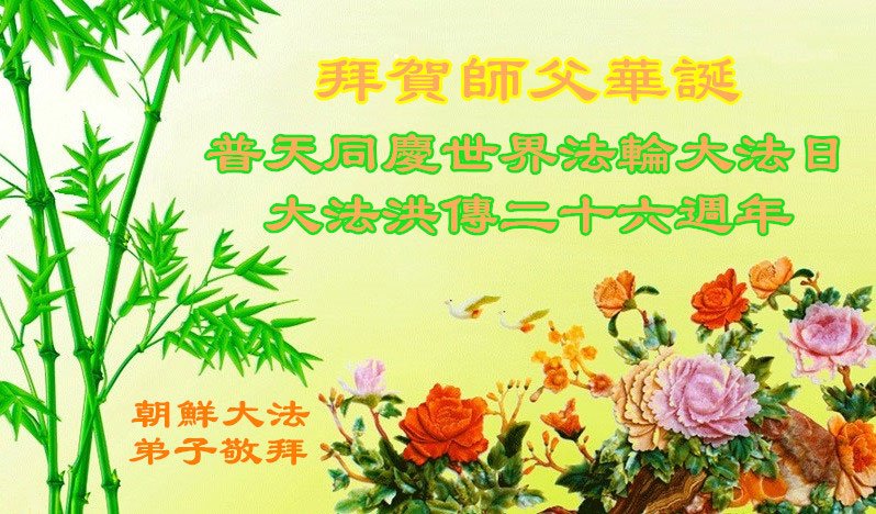 2018年5.13法轮大法日到来之际,弟子再一次敬谢师尊救度!师尊辛苦了!千言万语也无法表达师父的救度之恩! 同修在交流文章中常提到;师父给了第二次生命。我的感受是师父不但给了我第二次生命,还给了我第三次、还有更多次…… 由于凡心未泯,在修炼的路上真的是魔难重重,一波未平一波又起,修炼中的每一关都象经历惊涛骇浪,但在师父的呵护和承受下都有惊无险。每当我在修炼路上停滞不前时,师父便安排一名同修伸出手来拉一把,唤醒我返本归真的神念和救度众生的使命感。 再次感恩师尊!感恩大法! 朝鲜大法弟子恭贺师父华诞!普天同庆5.13世界法轮大法日!感恩师父救苍宇!