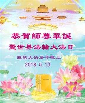 普天同庆世界法轮大法日,法轮大法好,真善忍好! 纽约大法弟子恭祝慈悲伟大的师尊生日快乐!普天同庆世界法轮大法日!