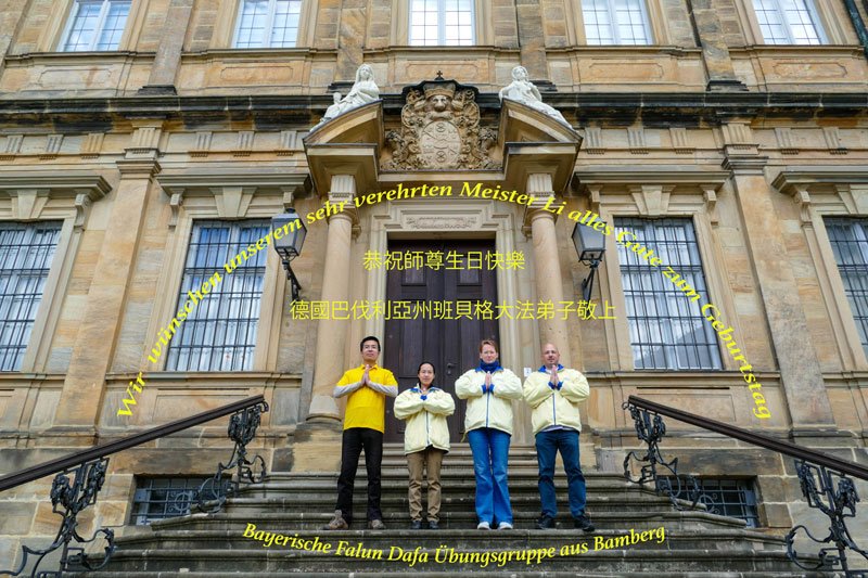 师父您好!师父辛苦了!弟子无以表达对师父慈悲救度之恩的感激。唯有修好自己,修去执著,做好三件事,多救人。 德国巴伐利亚州班贝格大法弟子恭祝师尊生日快乐!恭贺世界法轮大法日!