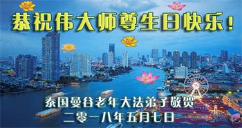 泰国曼谷老年大法弟子恭祝伟大师尊生日快乐!