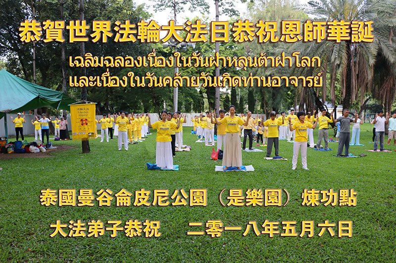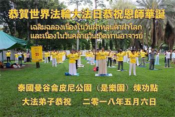 泰国曼谷仑皮尼公园(是乐园)炼功点大法弟子恭贺世界法轮大法日!恭祝恩师华诞!