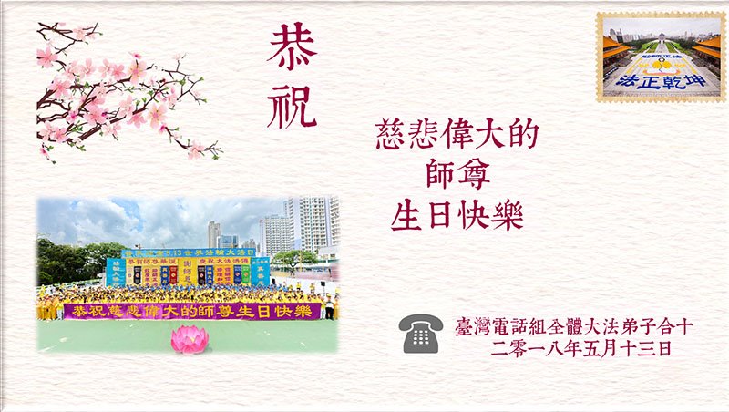 台湾电话组全体大法弟子恭祝师尊生日快乐!