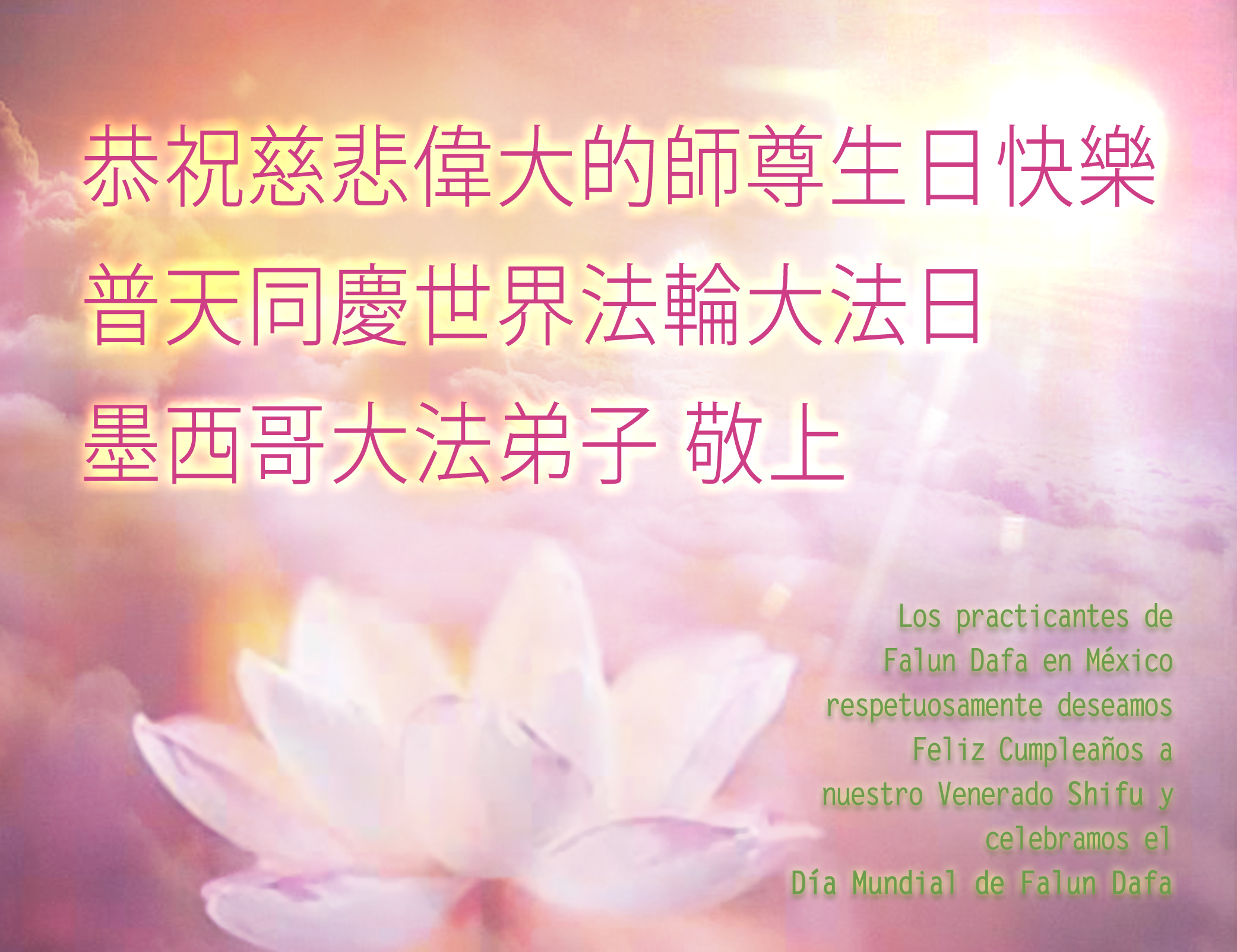 新加坡全体大法弟子恭祝师尊生日快乐! 墨西哥大法弟子恭祝慈悲伟大的师尊生日快乐!普天同庆世界法轮大法日!