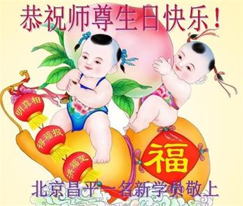 2017年得法的新学员恭祝师尊生日快乐!世界法轮大法日好!法轮大法好,真、善、忍好! 得法到如今一年多了,弟子在大法中受益良多,同时弟子看到了自己许多的不足,很多方面的认识在学法中提升,遇到问题时懂得向内找找自己问题。 最后弟子想说:一定真正”勇猛精進“,消除魔性,充实佛性,放下阻碍我讲真相的各种人心,抓紧时间多救人! 叩谢师恩! 北京昌平一名新学员恭祝师尊生日快乐!