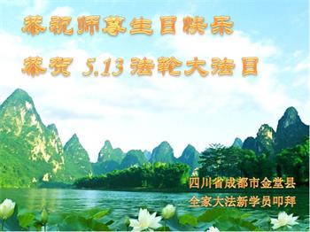四川省成都市金堂县全家大法新学员恭祝师父生日快乐!