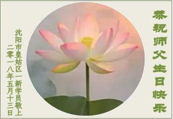 【明慧网二零一八年五月十三日】 辽宁省沈阳一个老学员一个新学员恭祝师尊生日快乐!
