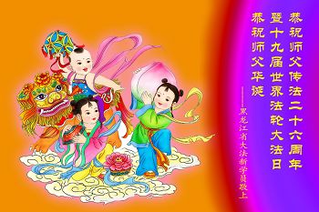 在此世界法轮大法日之际,我仅代表长春市一家学法小组的全体成员恭祝师尊生日快乐!热烈祝贺世界法轮大法日! 我学法小组有几名新学员,他们特意嘱咐我一定要代他们说声:师父生日快乐!师父您辛苦了!我们一定努力做好三件事! |