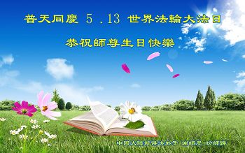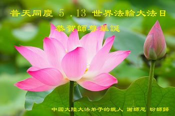 值此普天同庆法轮大法日!感恩师尊救度之恩!愿大陆同胞能像我一样幸运了解真相、走進大法,找回人生的真谛,选择美好的未来! 重庆市一位大法新学员恭祝师尊生日快乐!普天同庆五·一三!
