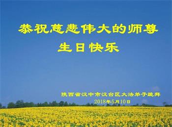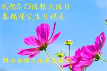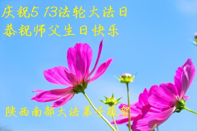 陕西汉中市一学法小组恭祝师父生日快乐!并热烈庆祝5.13世界法轮大法日。师父您辛苦了,弟子谢谢您的慈悲苦度。叩谢师父! 陕西省咸阳市三原县全体大法弟子恭贺世界法轮大法日暨师尊华诞!