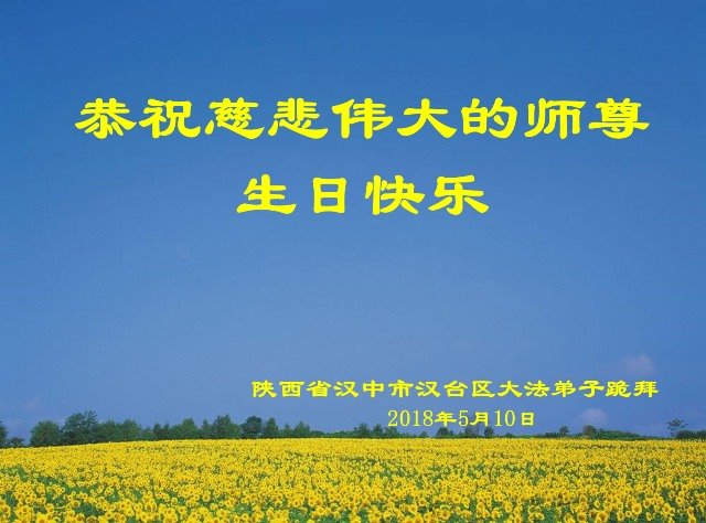 【明慧网二零一八年五月十三日】 陕西省铁路系统大法弟子恭祝师父生日快乐!