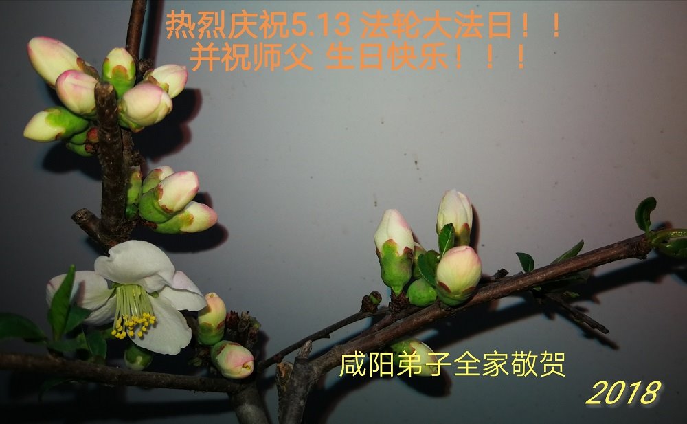 咸阳大法弟子全家敬贺 2018-05-12 陕西宝鸡陈仓区一大法弟子恭祝师尊生日快乐!普天同庆5.13世界法轮大法日!