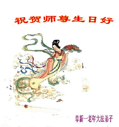 辽宁阜新一老年大法弟子祝贺师尊生日好!同祝法轮大法日!