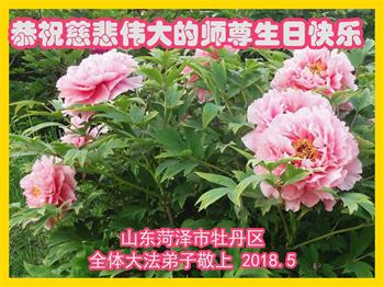 山东菏泽市牡丹区全体大法弟子恭贺5.13世界法轮大法日!恭祝慈悲伟大的师尊生日快乐!