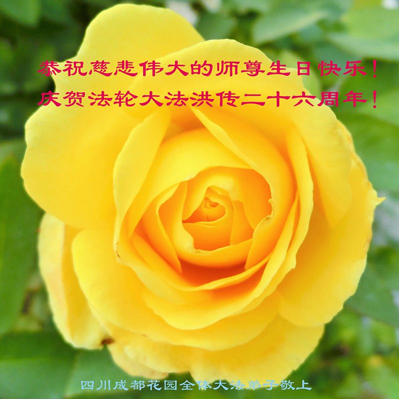 四川成都花园全体大法弟子恭祝师尊生日快乐!