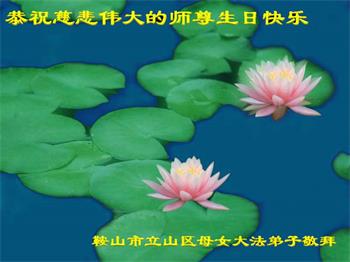 辽宁省鞍山市立山区母女大法弟子恭祝慈悲伟大的师尊生日快乐!