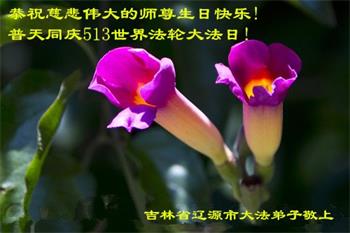 吉林省辽源市大法弟子恭祝慈悲伟大的师尊生日快乐!普天同庆513世界法轮大法日!