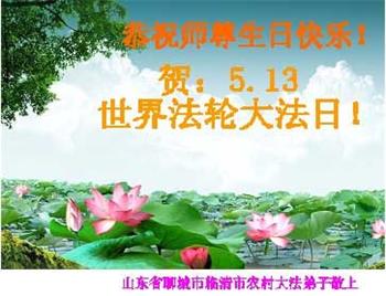 山东东营地区大法弟子恭祝师尊生日快乐!庆祝5.13世界法轮大法日!