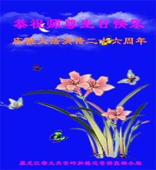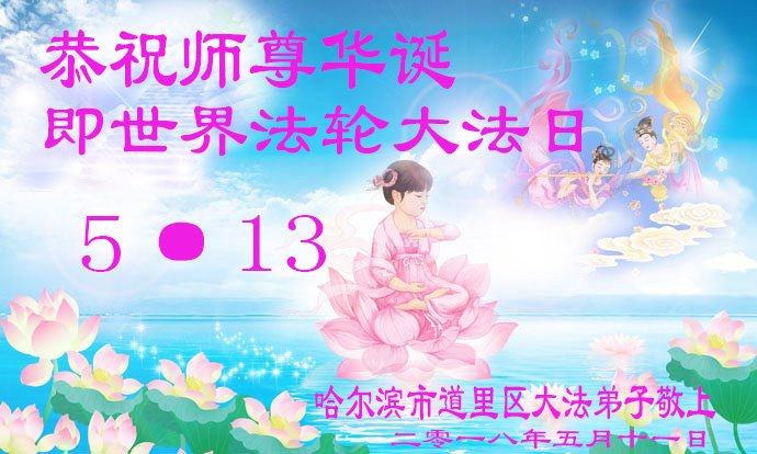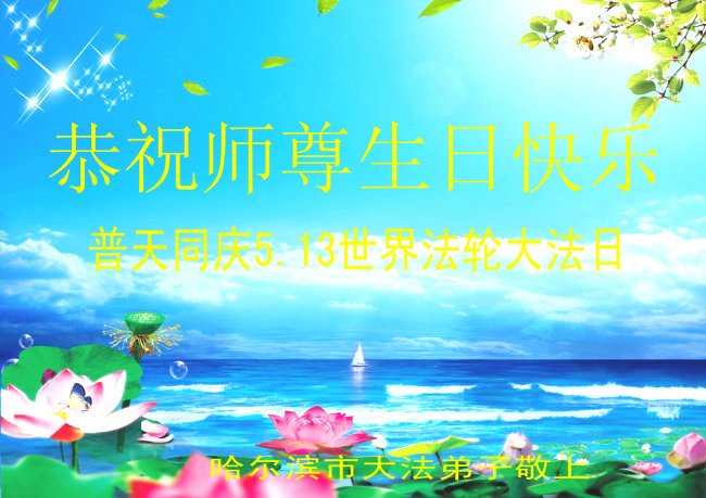 黑龙江省哈尔滨道里区大法弟子恭祝师尊华诞即世界法轮大法日!感恩师尊慈悲苦度!