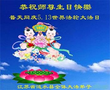 江苏省淮安市涟水县全体大法弟子恭祝慈悲伟大的师尊生日快乐!普天同庆世界法轮大法日!