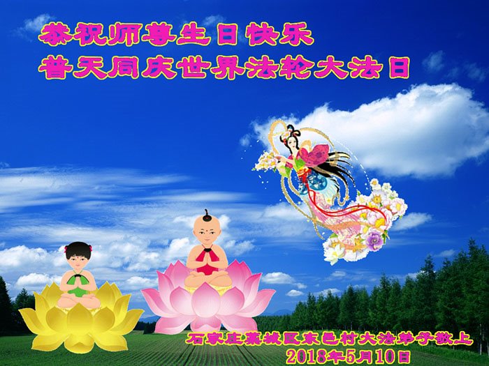 河北省石家庄市藁城市东邑村大法弟子恭祝师尊生日快乐!普天同庆世界法轮大法日!