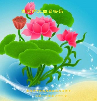师尊好! 我代表大法弟子母亲以及我们全家向师尊问好! 我们全家都非常想念师尊。不管在什么情况下弟子一定做好,让师尊放心。母亲是个信师信法的大法弟子,她一定能走出来。谢谢师尊(合十)。 重庆渝中区大法弟子恭祝师父生日快乐!