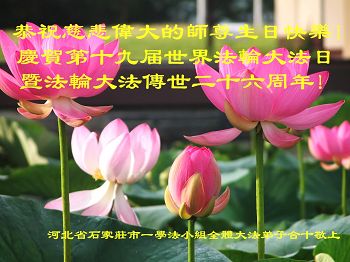 河北省石家庄市桥西区大法弟子恭祝师尊生日快乐!恭贺法轮大法日!